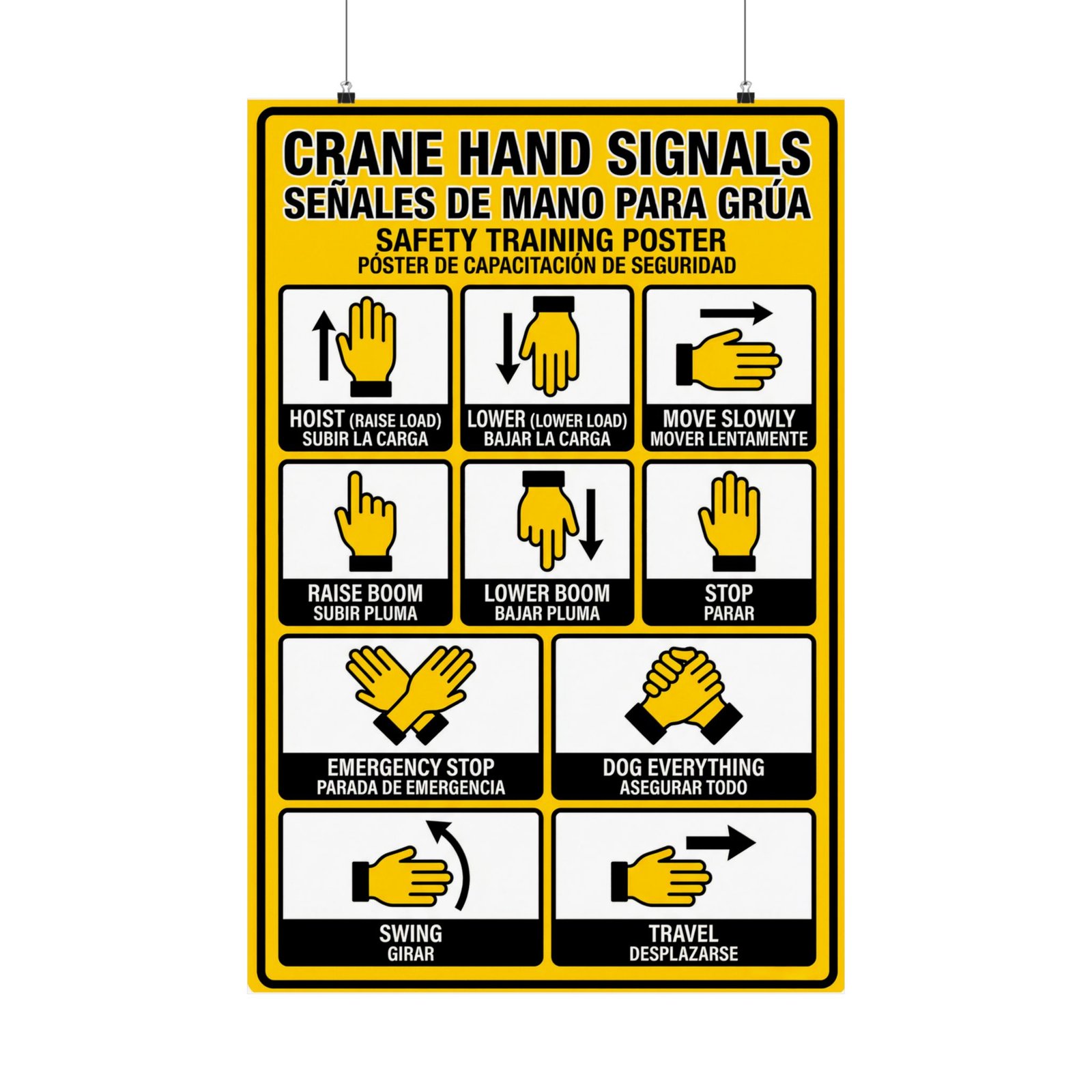 Bilingual Crane Hand Signals Poster | OSHA English & Spanish Safety Chart
