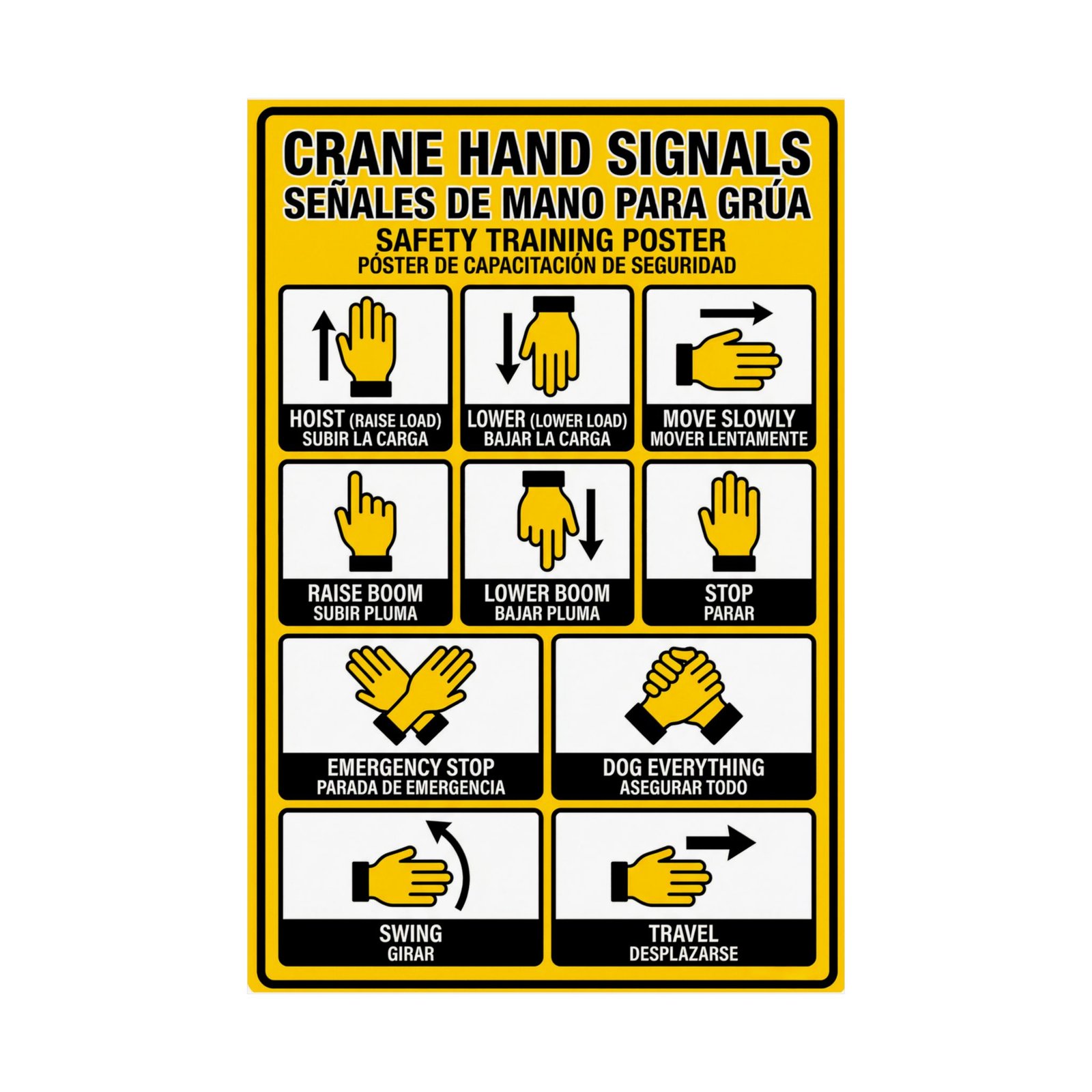Safety managers buy this bilingual crane hand signals poster to solve the direct psychological need for inclusion and the operational necessity for audit-proof training materials. By displaying this chart, you provide visual proof of your site-specific safety plan, which is often the first thing an inspector reviews after an incident.