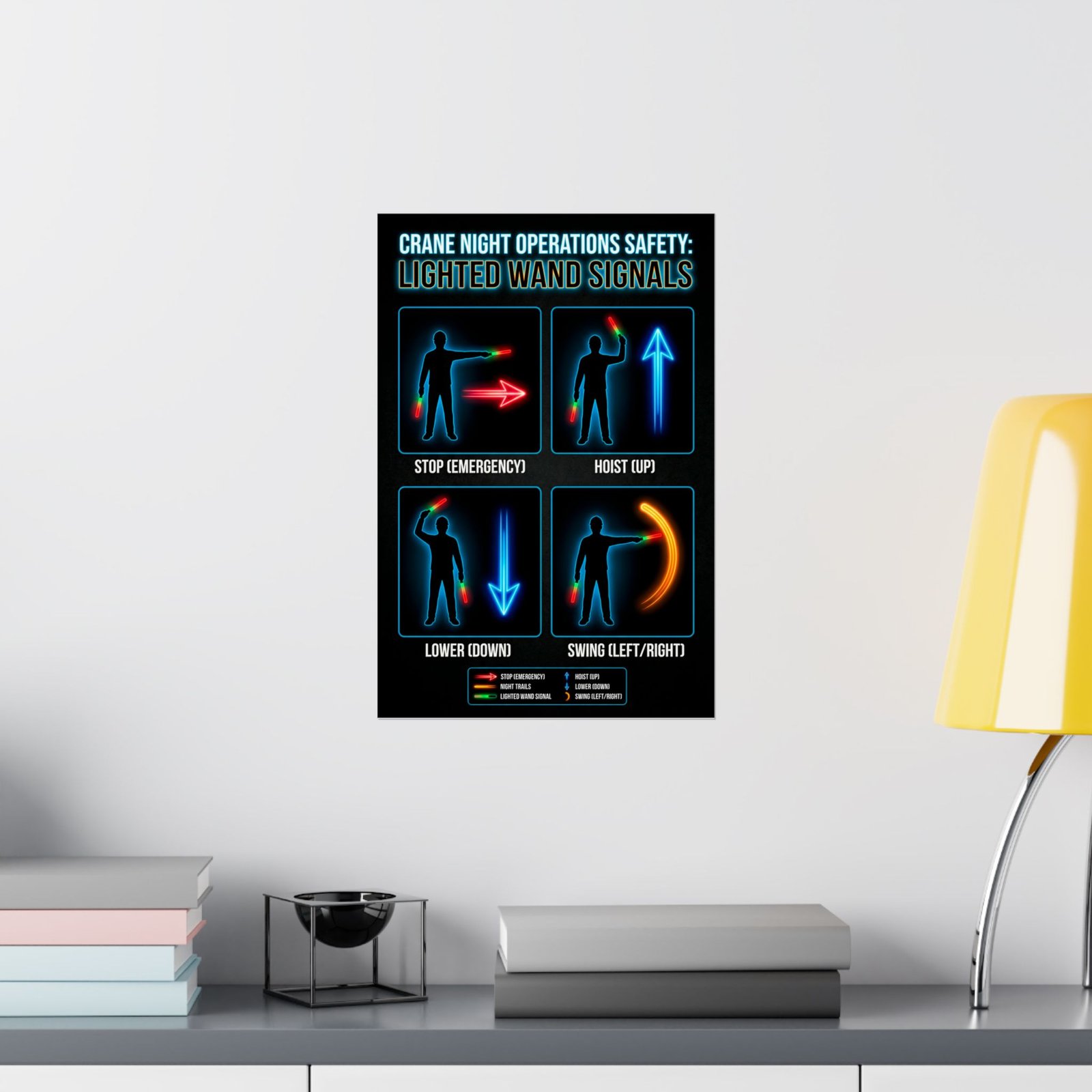 Crane Night Operations Safety Poster | Lighted Wand Signals Chart