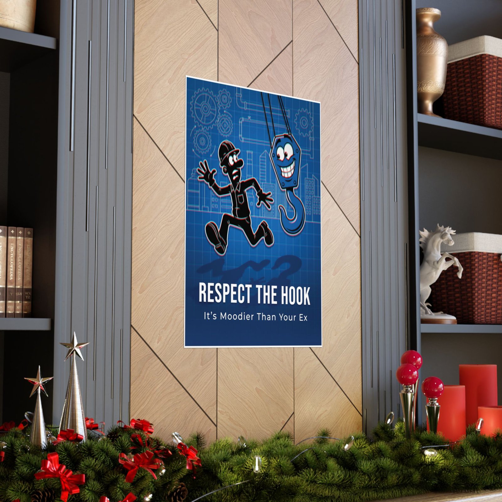 Printed using high-quality giclée technology, the Respect the Hook Safety Poster delivers rich, fade-resistant colour with crisp detail and no distracting glare. The matte finish enhances readability under jobsite lighting, while museum-grade archival paper ensures long-term durability when displayed indoors. Available in multiple sizes, including the popular 24″ × 36″ vertical format, it suits everything from site offices and training rooms to framed displays in workshops.