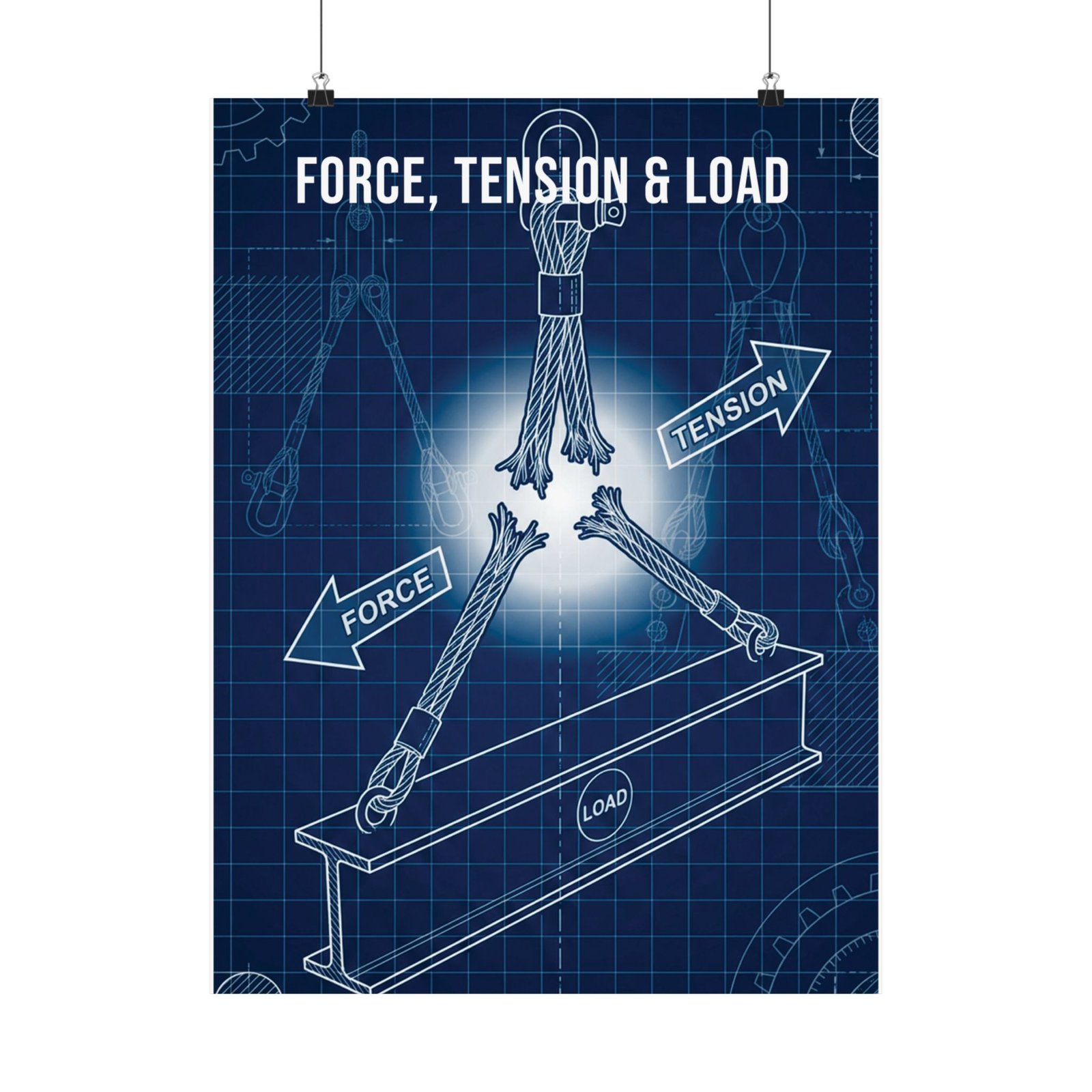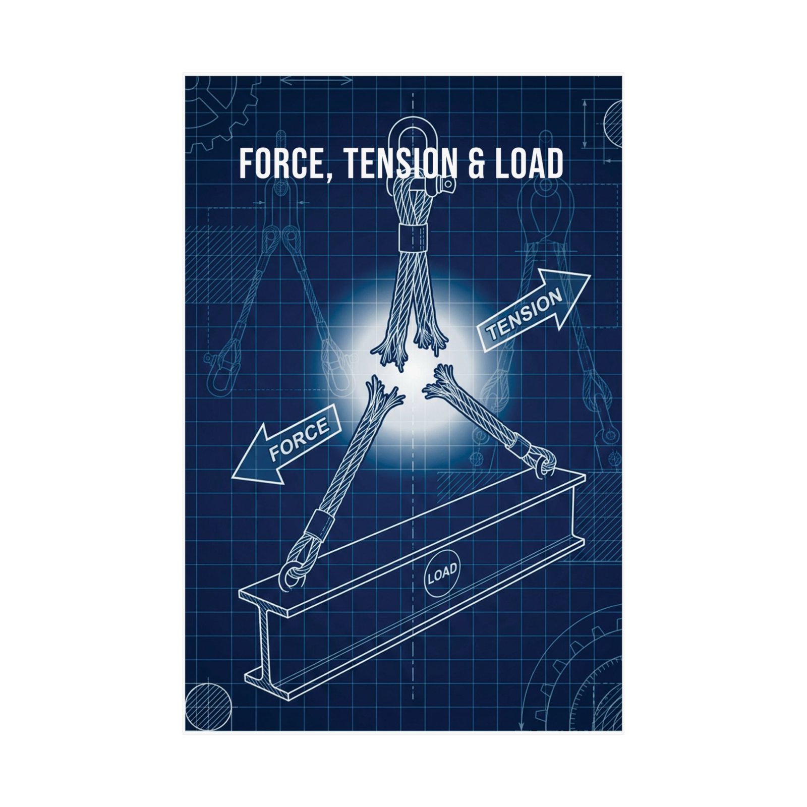 Force tension load poster presenting a focused visual study of the forces at work in lifting and rigging environments.
