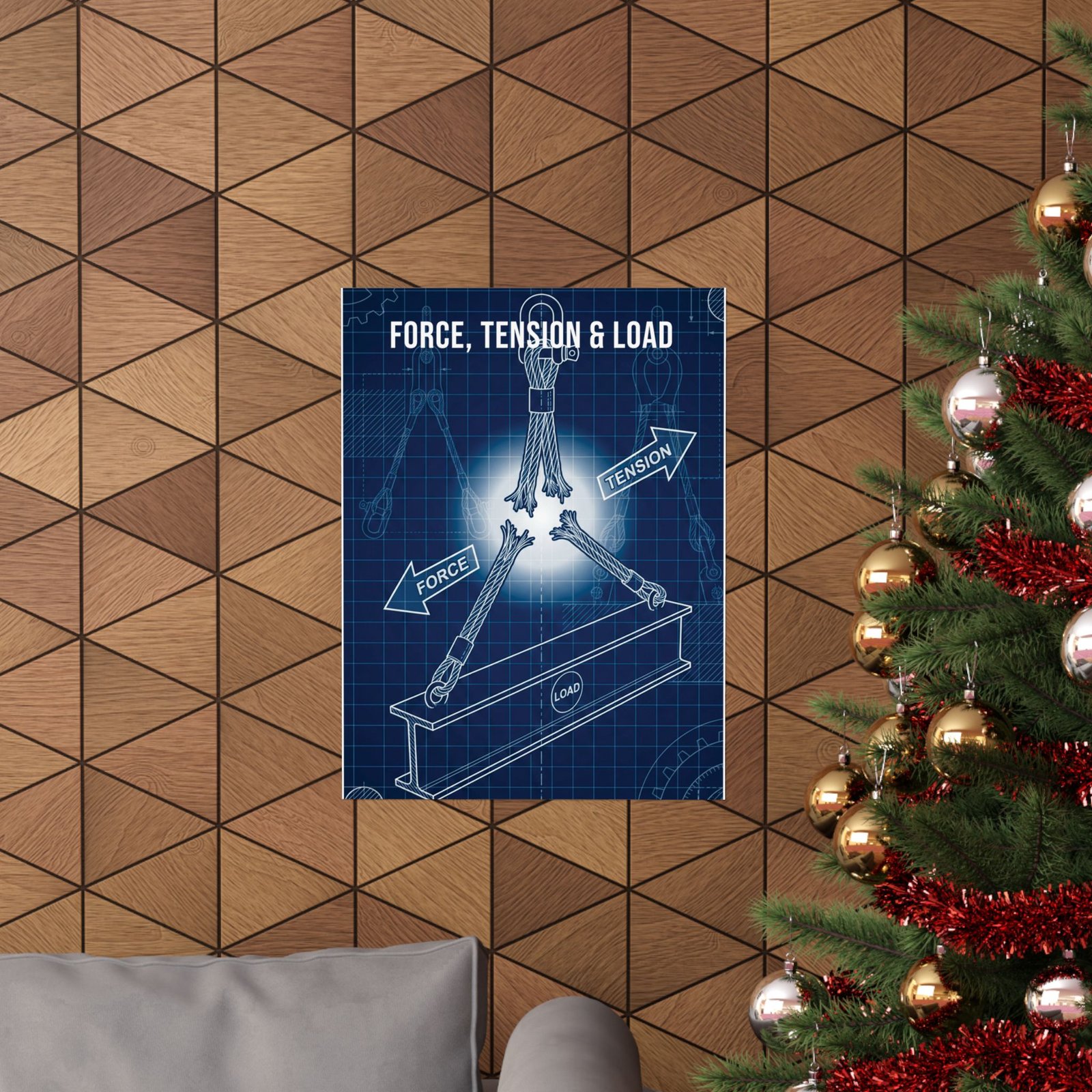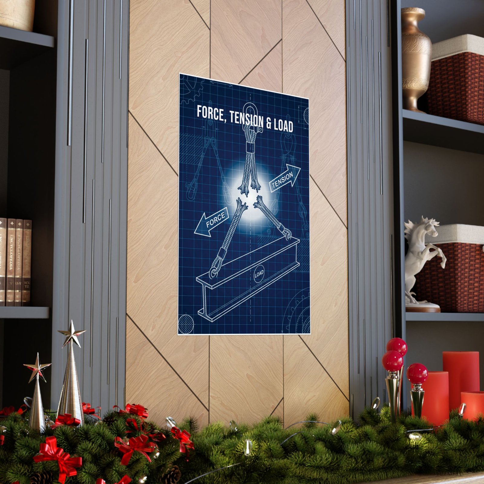This poster integrates naturally into studios, workshops, engineering offices, industrial-inspired living spaces, and study areas where structure and intention matter. It functions as a quiet reference point — a reminder of the invisible relationships at play whenever materials are lifted, supported, or held under tension. The tone is contemplative rather than technical, reinforcing awareness through visual clarity.