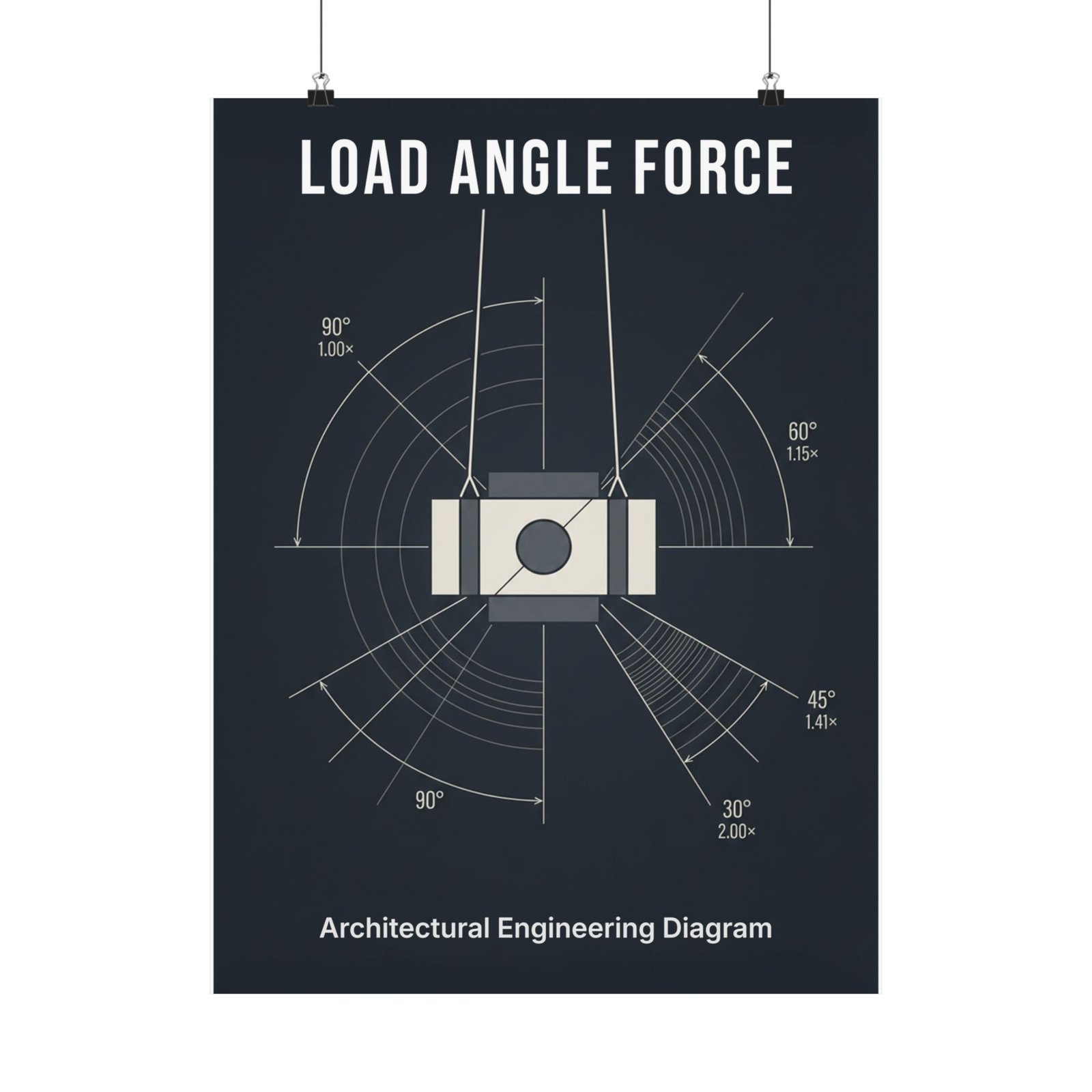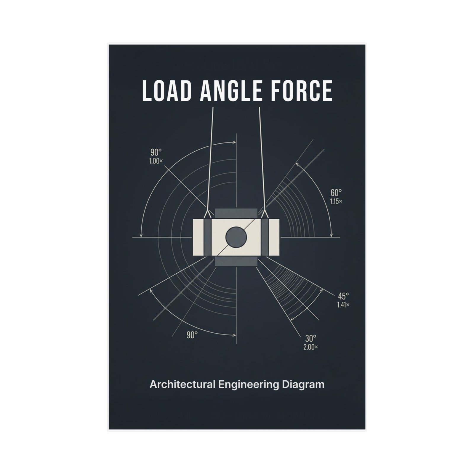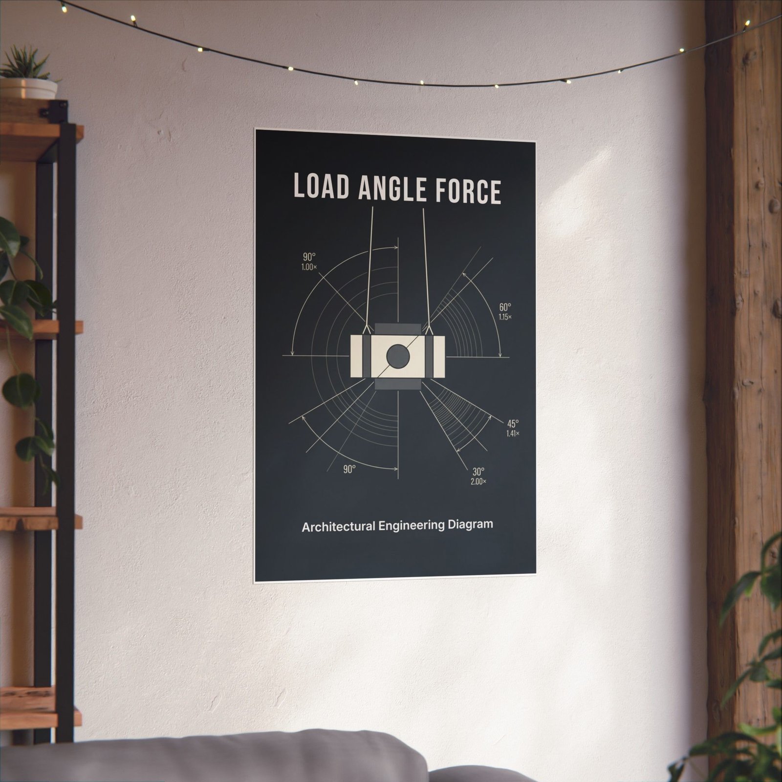 This Load Angle Force Poster is a focused, design-driven reference built for people who think in angles, vectors, and margins of safety. Clean architectural linework sits against a deep, museum-grade background, allowing diagrams, radial guides, and labeled angles to read instantly — even under bright workshop or training-room lighting.