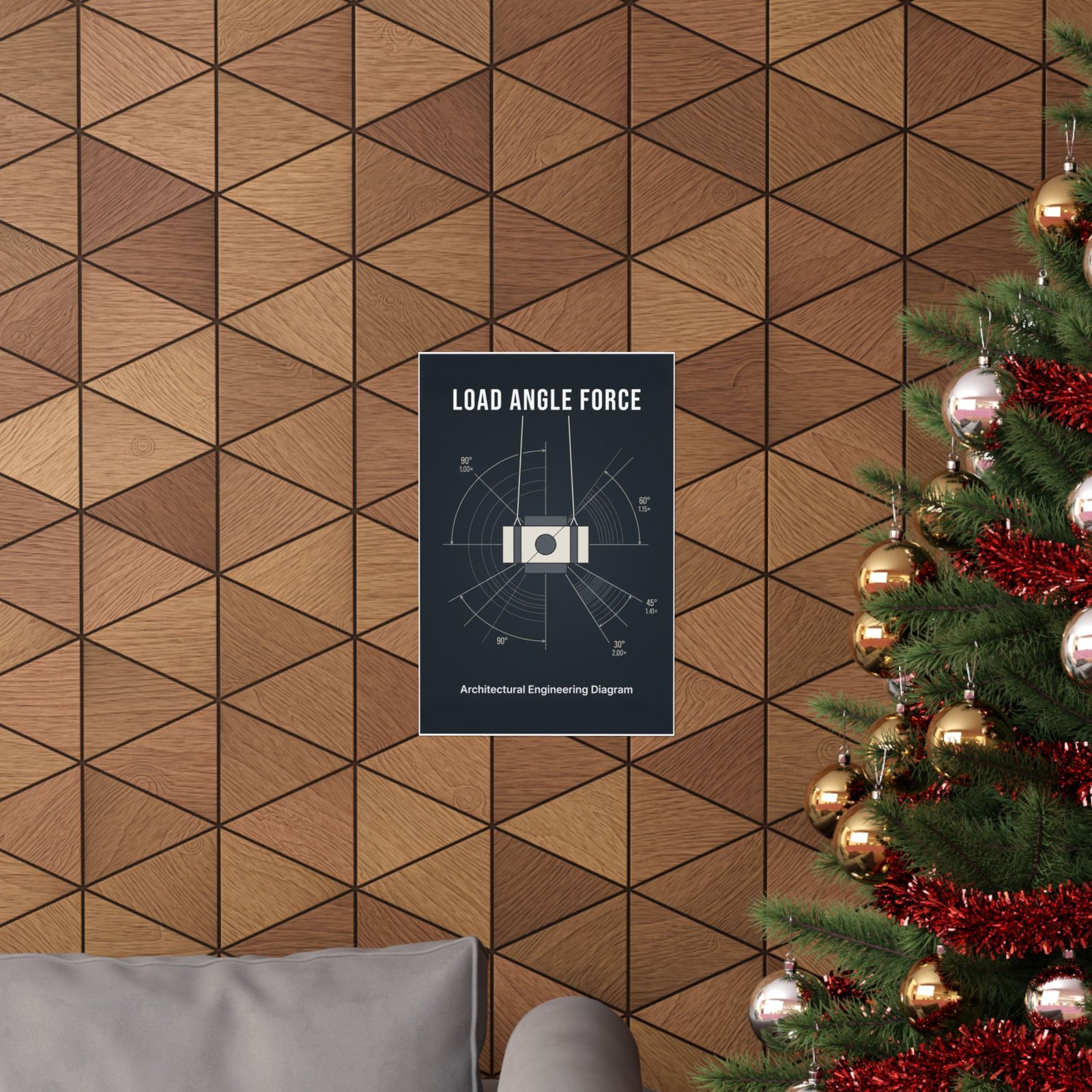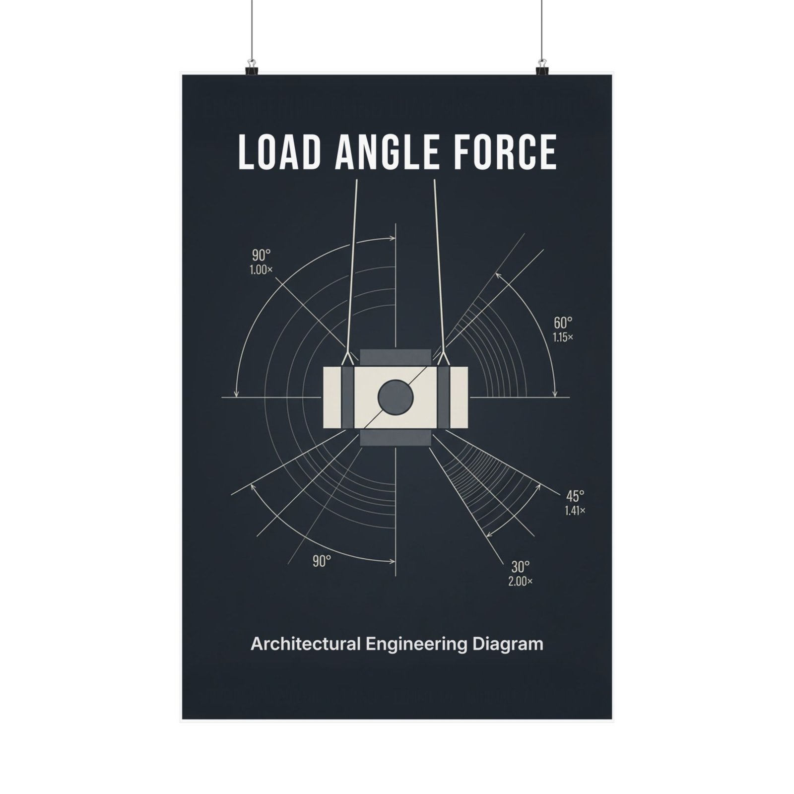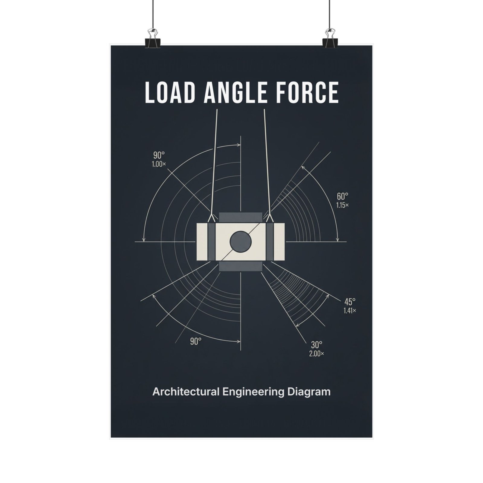 This Load Angle Force Poster is a focused, design-driven reference built for people who think in angles, vectors, and margins of safety. Clean architectural linework sits against a deep, museum-grade background, allowing diagrams, radial guides, and labeled angles to read instantly — even under bright workshop or training-room lighting.