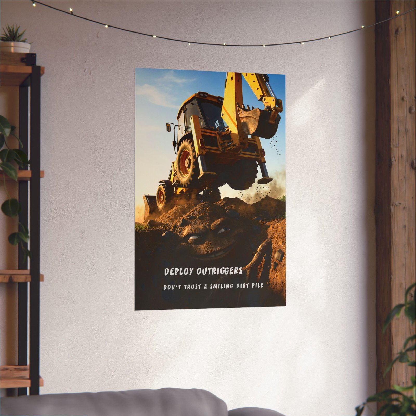 Construction Safety Poster Deploy Outriggers – “Don’t Trust a Smiling Dirt Pile”