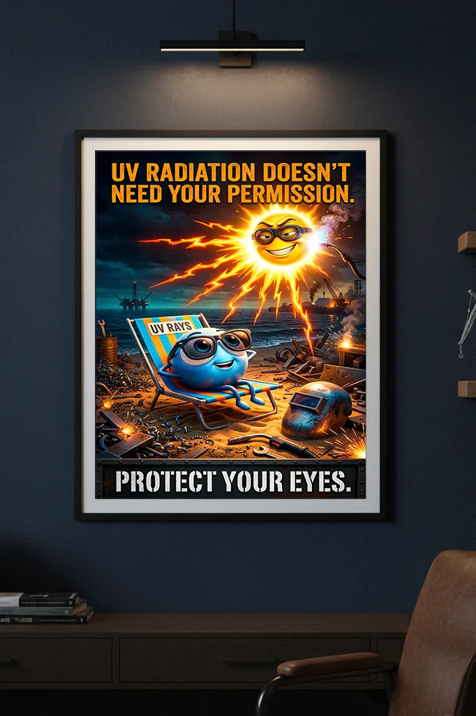 Safety Directors know that compliance isn’t just about checkboxes; it’s about engagement. By displaying a funny welding eye protection poster, you’re utilizing modern behavioral science to remind welders that UV radiation from a welding arc is a constant threat that doesn’t ask for permission. This visual asset supports “toolbox talks” by providing a relatable anchor point for discussing “arc eye” and long-term retinal health.