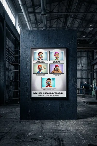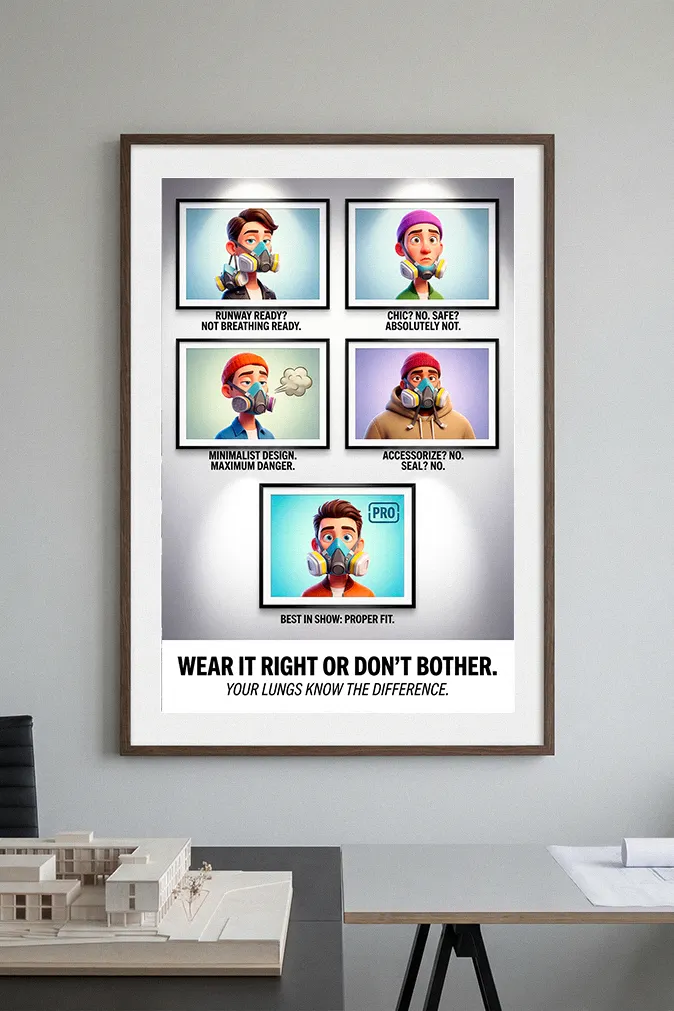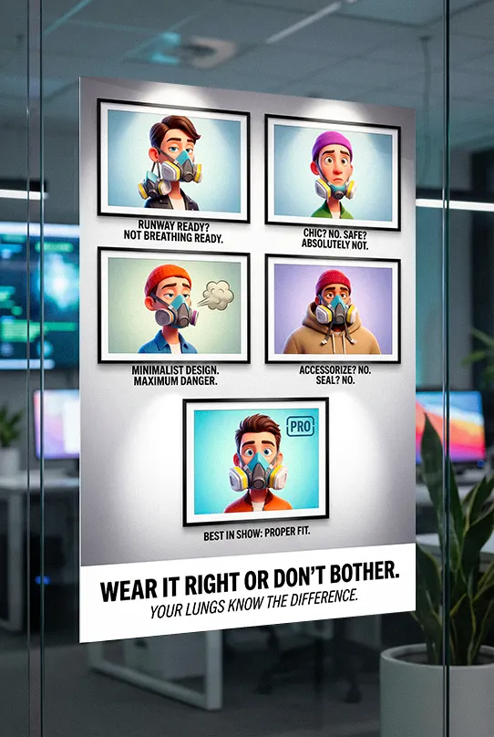 This is often a result of “signage fatigue” and perceived discomfort. By using a satirical poster, you break through the mental wall of repetitive training. Visualizing the “bad look” as an unprofessional fashion faux-pas creates a social nudge that reinforces the technical training provided during the annual fit test.