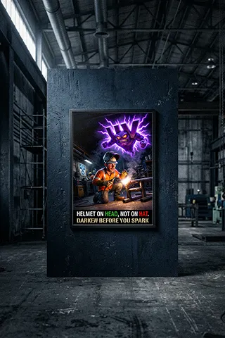 The most effective placement is at “Decision Nodes”—the location where a worker is about to start a task. For a welding helmet safety poster, the best spots are the PPE storage locker or the entrance to a welding booth. Placing posters at eye level in these transition zones ensures the message is the last thing a welder sees before striking an arc.