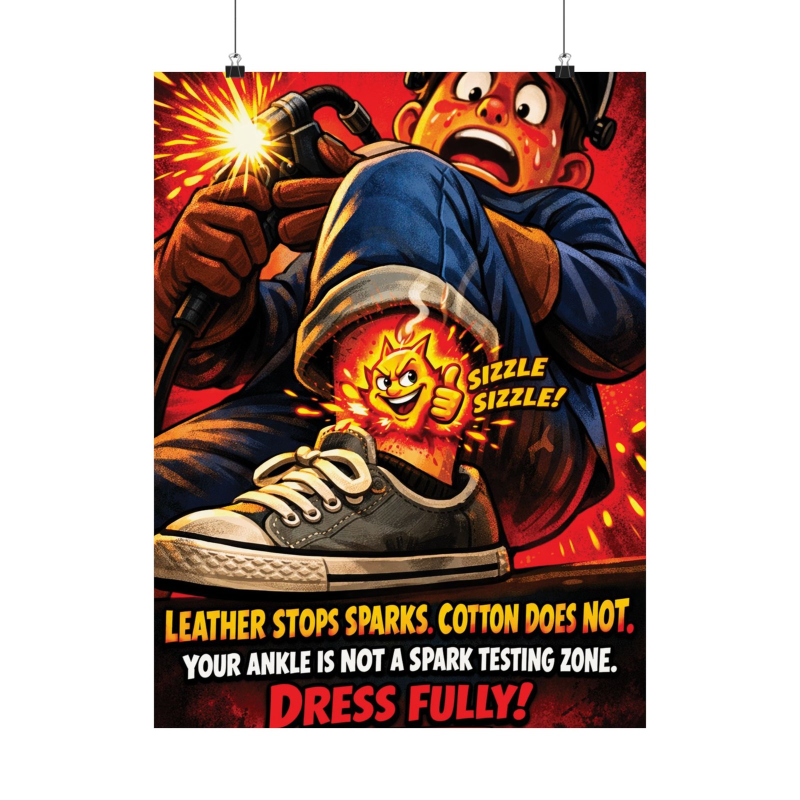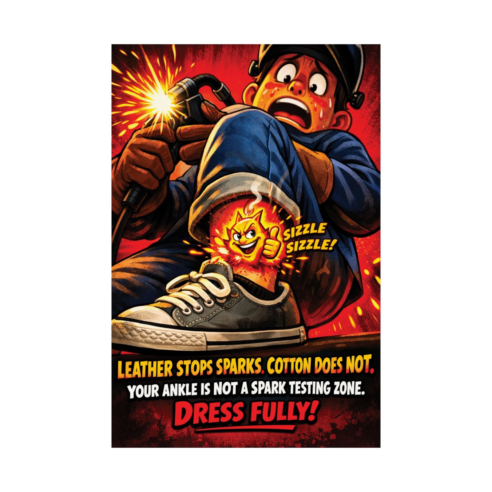 Welding Safety Poster PPE – “Dress Fully!” Spark & Burn Prevention Reminder