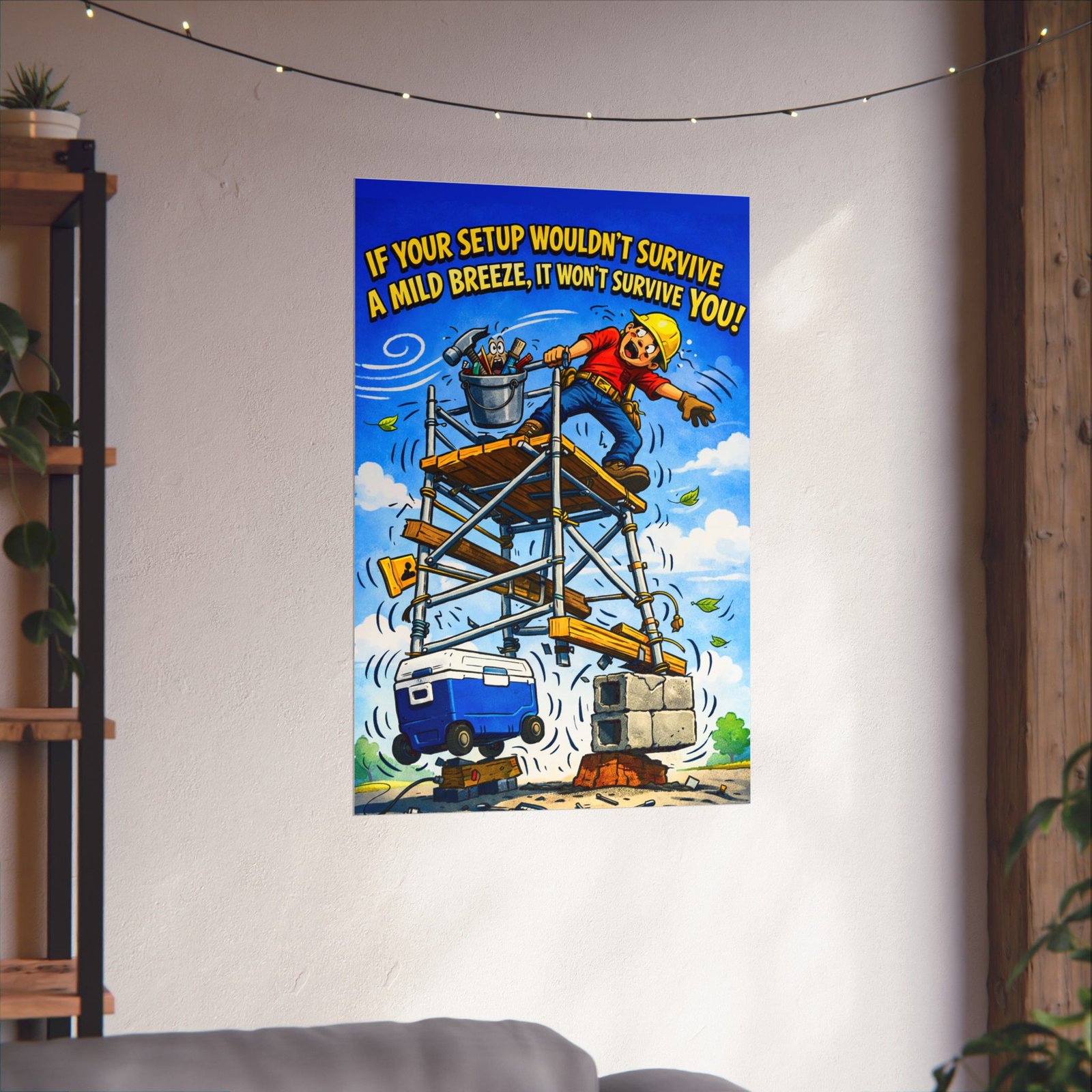 By combining humor with practical awareness, this construction safety poster setup works as both wall art and a daily safety reminder. It sparks conversation, earns a second look, and quietly reinforces the importance of stable footing, proper support, and thoughtful preparation on every jobsite.