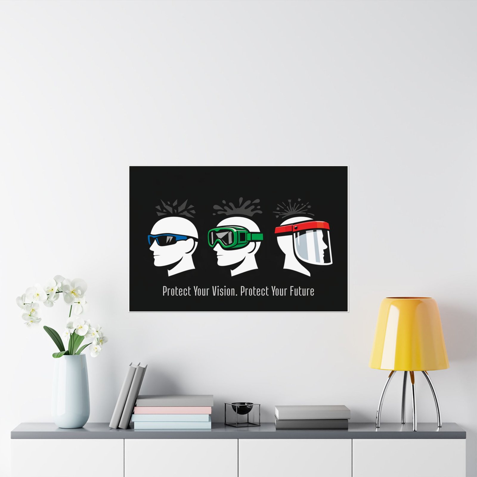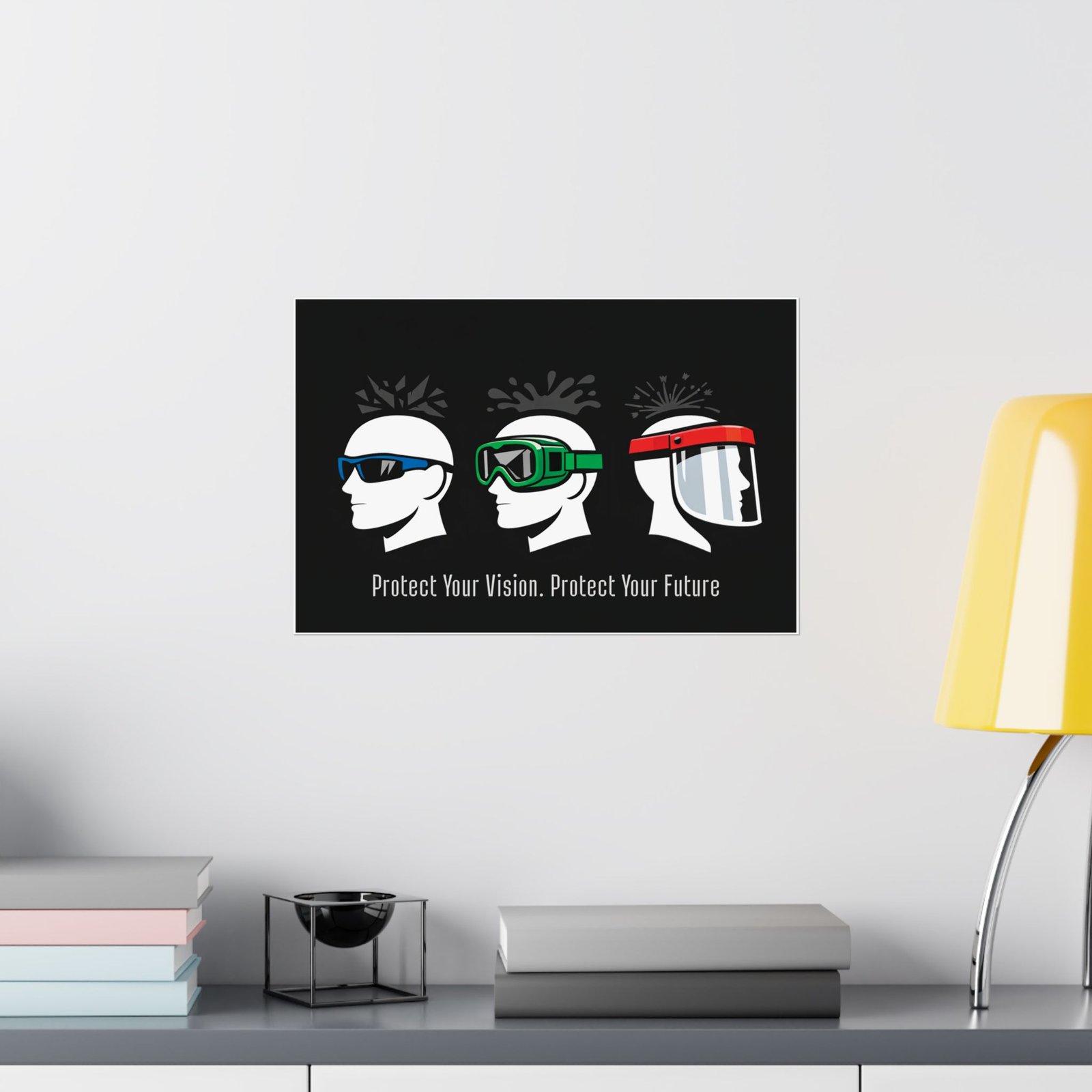 This eye and face protection poster is printed on 175–189 g/m² heavyweight archival paper, ensuring it remains a vibrant and professional reference for years of indoor display. We utilize Giclée printing for bright, fade-resistant colors that make the color-coded profiles pop against the deep matte black field. The light-absorbing matte finish ensures that the hazard icons and PPE details are perfectly readable under high-intensity indoor lighting. For any safety coordinator or shop foreman, this eye and face protection poster is an audit-ready asset that supports rigorous eye safety protocols